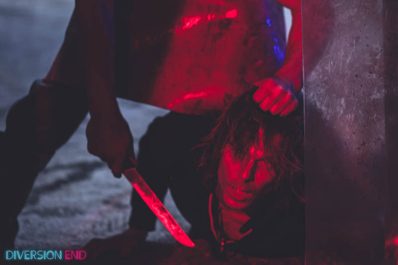 Nieśmiały złodziejaszek – Oleg – nieudolnie próbuje sprostać wymagającym potrzebom seksualnym swojej kobiety, typowej femme fatale. Chcąc zabawić się z nią na jej sposób pożycza od swojego kumpla policjanta broń. Podczas zabawy pistolet wypala i kobieta umiera. Oleg i Blaz mają teraz problem, który muszą rozwiązać. Na ich drodze stają dwie prostytutki, które tylko pogarszają ich sytuację. Z każdą godziną sytuacja coraz bardziej wymyka się spod kontroli. “Diversion End” to komiksowa opowieść o miłości i zdradzie, wybaczeniu i zemście. Historia ma miejsce w neonowym, fikcyjnym mieście bezprawia – Nowej Warszawie.